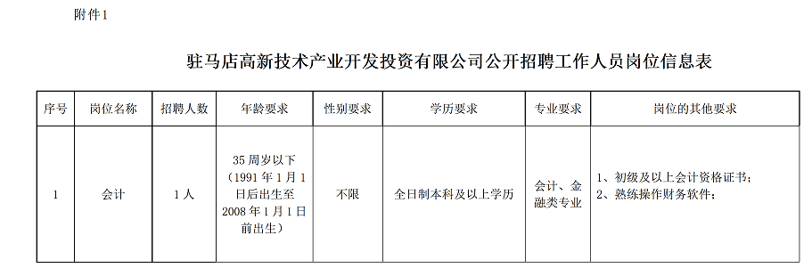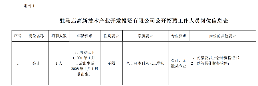 驻马店高新技术产业开发投资有限公司公开招聘工作人员公告